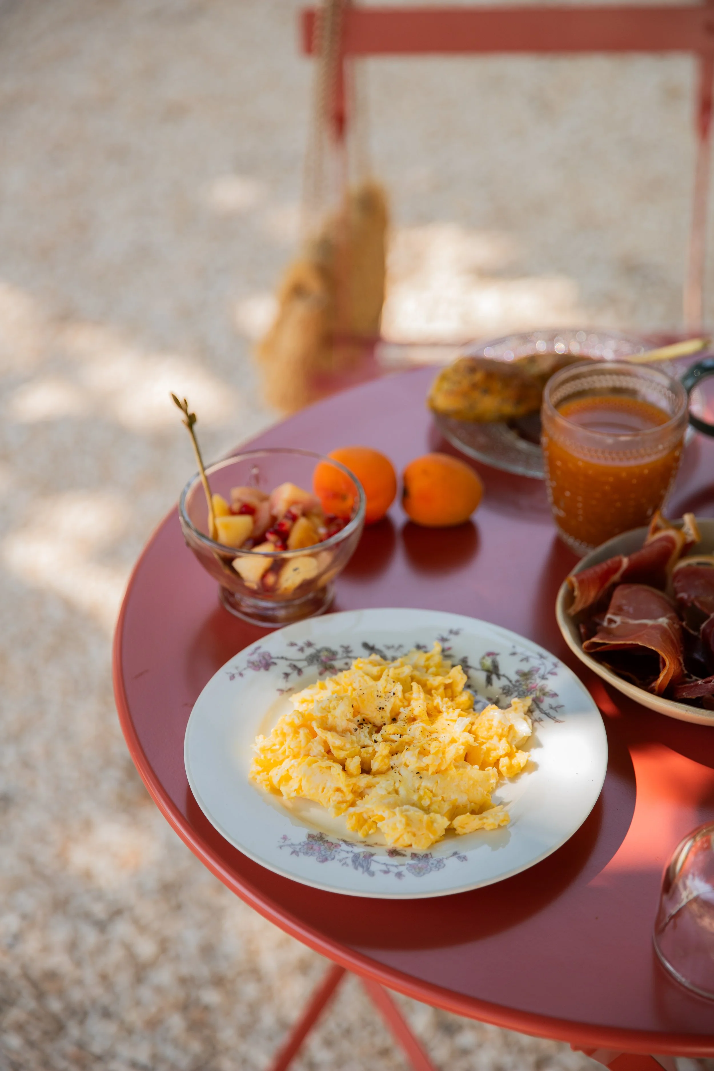 Le petit déjeuner était très complet : brioche maison, délicieuses confitures, pains normaux et aux graines, plateaux de fruits… Avec même des œufs brouillés et du jambon.