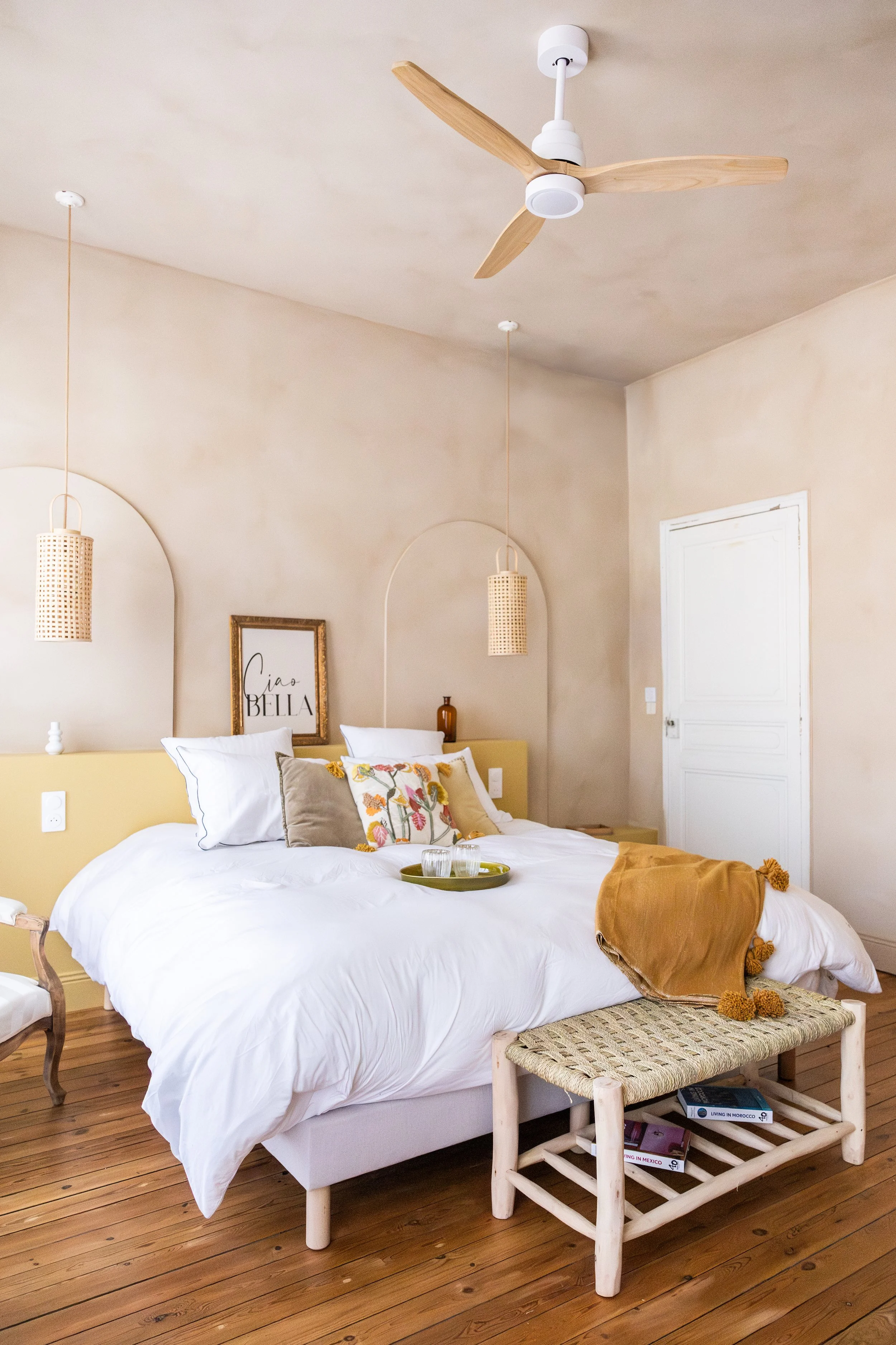Découvrez cette chambre lumineuse, alliant confort et modernité. Les murs aux tons doux créent une atmosphère apaisante, tandis que les grandes fenêtres laissent entrer une lumière naturelle, illuminant chaque recoin de la pièce. Le lit King-size, avec ses draps de qualité, vous promet des nuits de sommeil paisibles. Une décoration soignée, mêlant touches contemporaines et éléments naturels, confère à l’espace une ambiance chaleureuse et invitante.